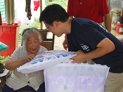 We acknowledged a lack of hygiene products, cooking oil and blanket, and delivered them to the disaster-hit areas from Chengdu. Targeted areas were Qingchuan County and Jiangyou, in northern part of the province and Mao County in Ngawa Tibetan and Qiang Autonomous Prefecture, in western part of the province.
