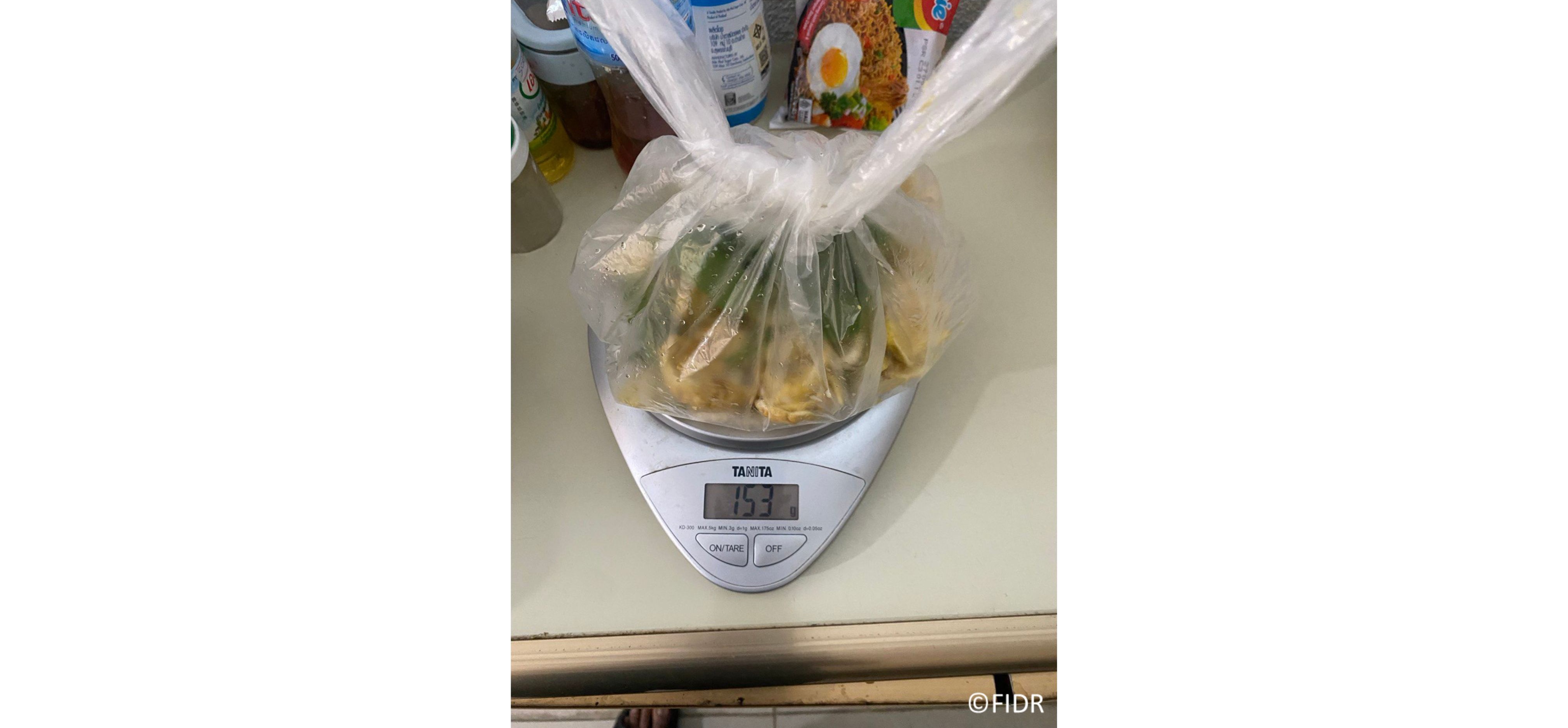 Measuring food scraps before putting them into the compost bin