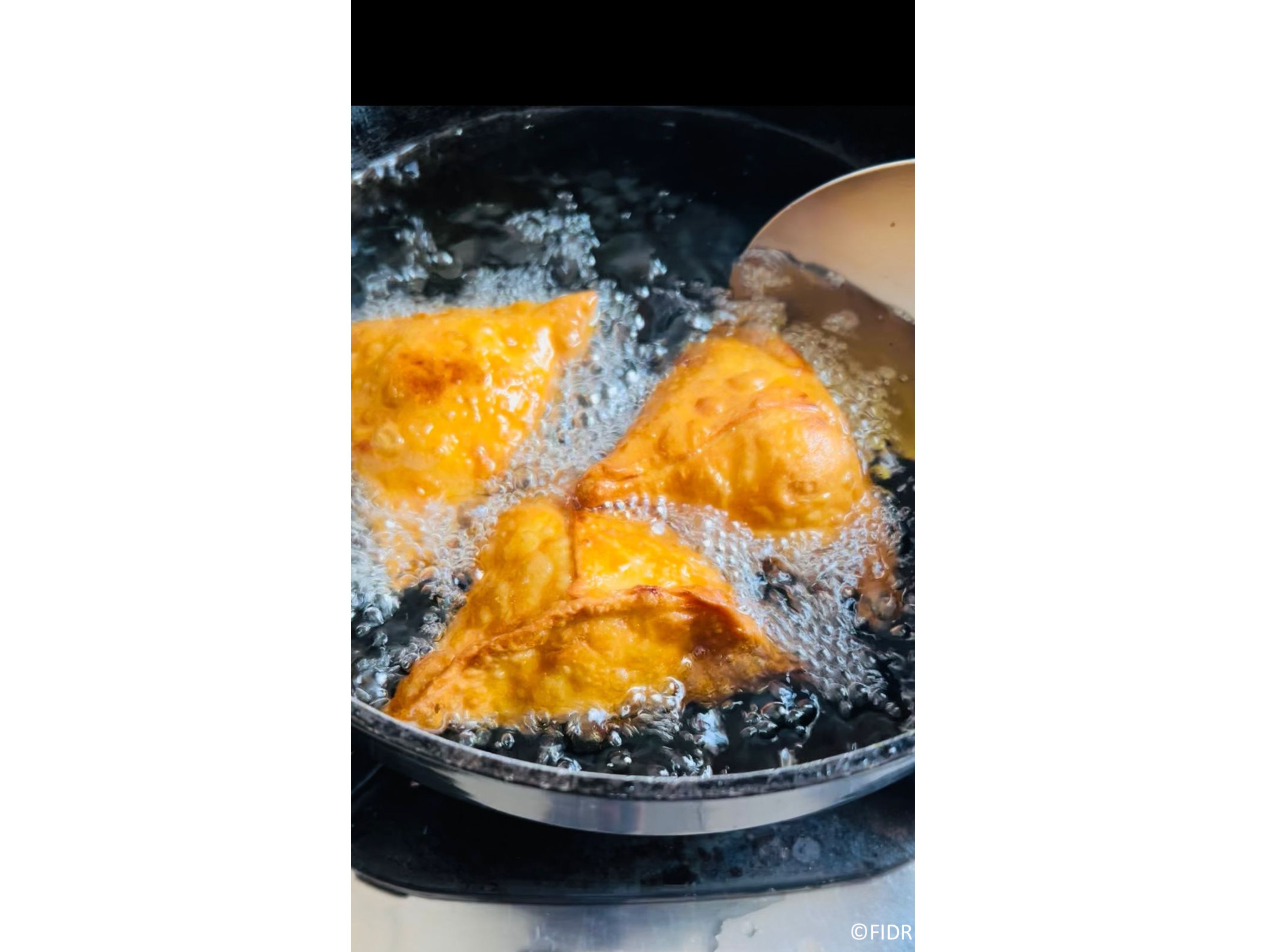 Heat the oil in the deep pan so that the samosa can fully dip into the oil, and fry it in a medium heat until it turns golden brown on all sides. Then, take the samosa out of the pan, and finally, it is ready to serve!